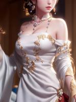 穿了一件优雅的白色连衣裙,长发微卷,妆容精致,美得像一幅画。